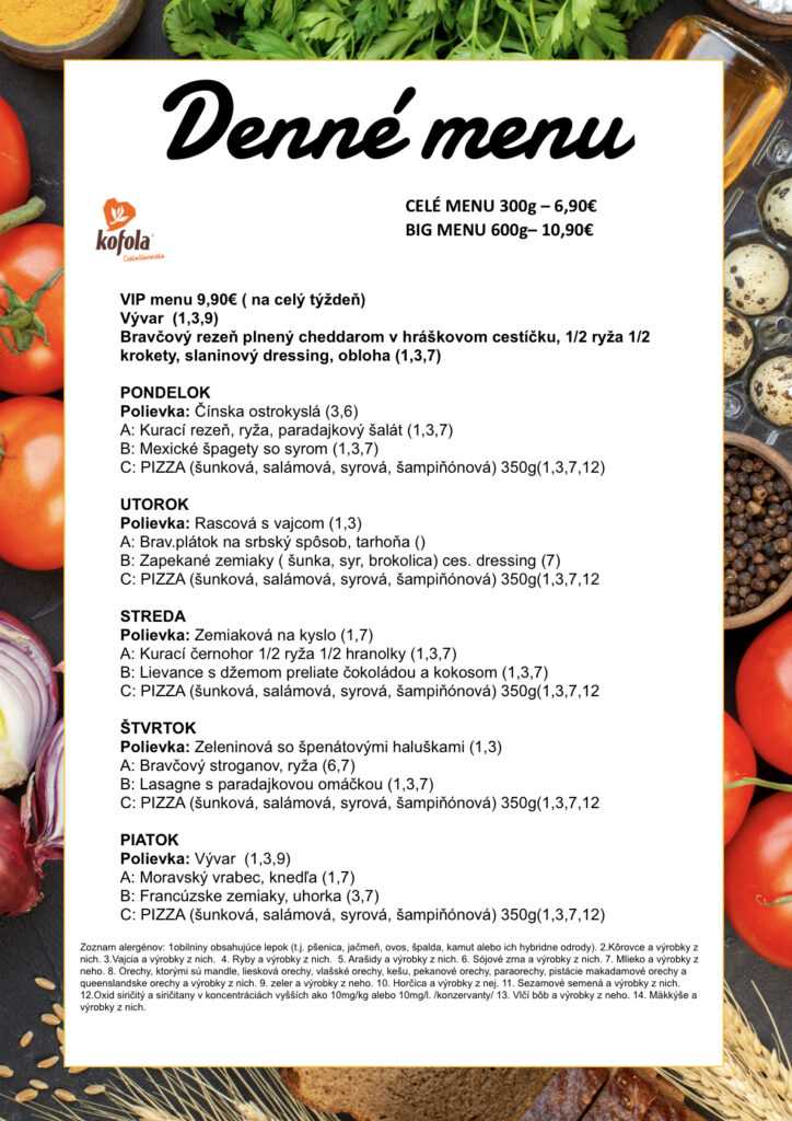 Uvedena váha je váha celého denného menu + 0,3l polievka.