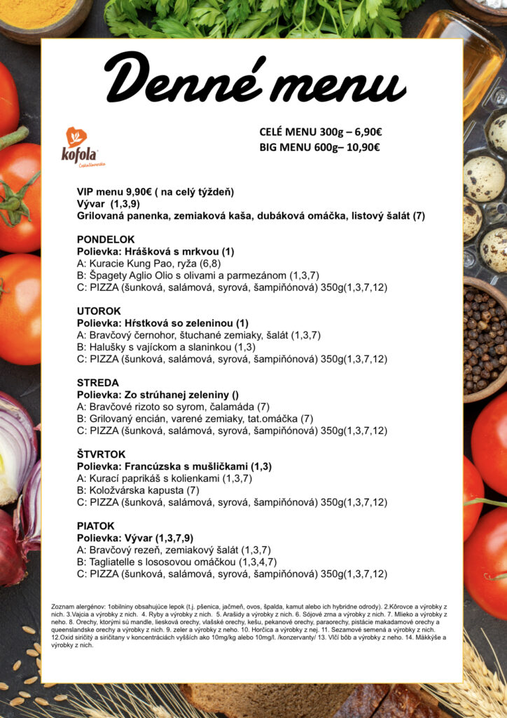 • Uvedena váha je váha celého denného menu + 0,3l polievka.